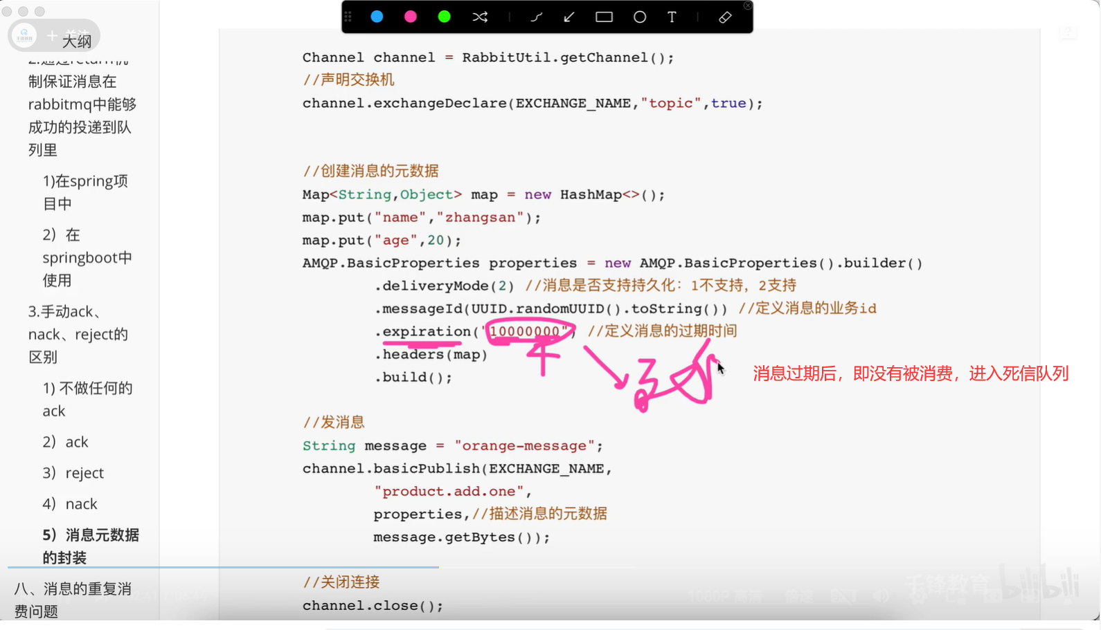 messageProperties.setExpiration("20000"); // 设置过期时间20秒
