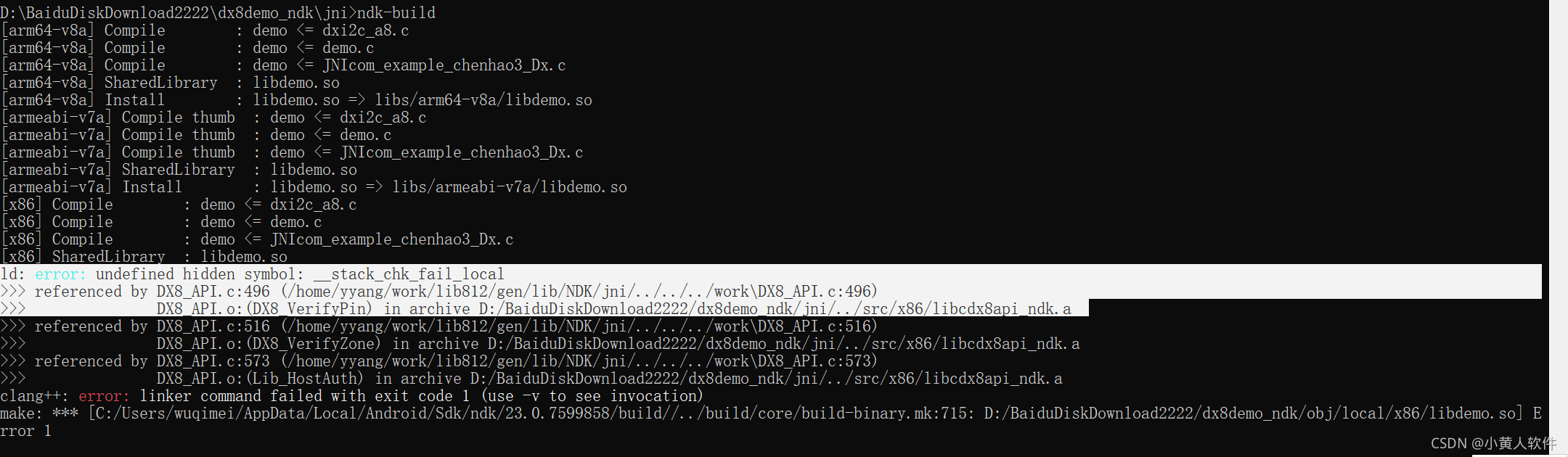 说明方法是对的,只是少对应cpu架构库。所有cpu加上,x86,x86_64 报错