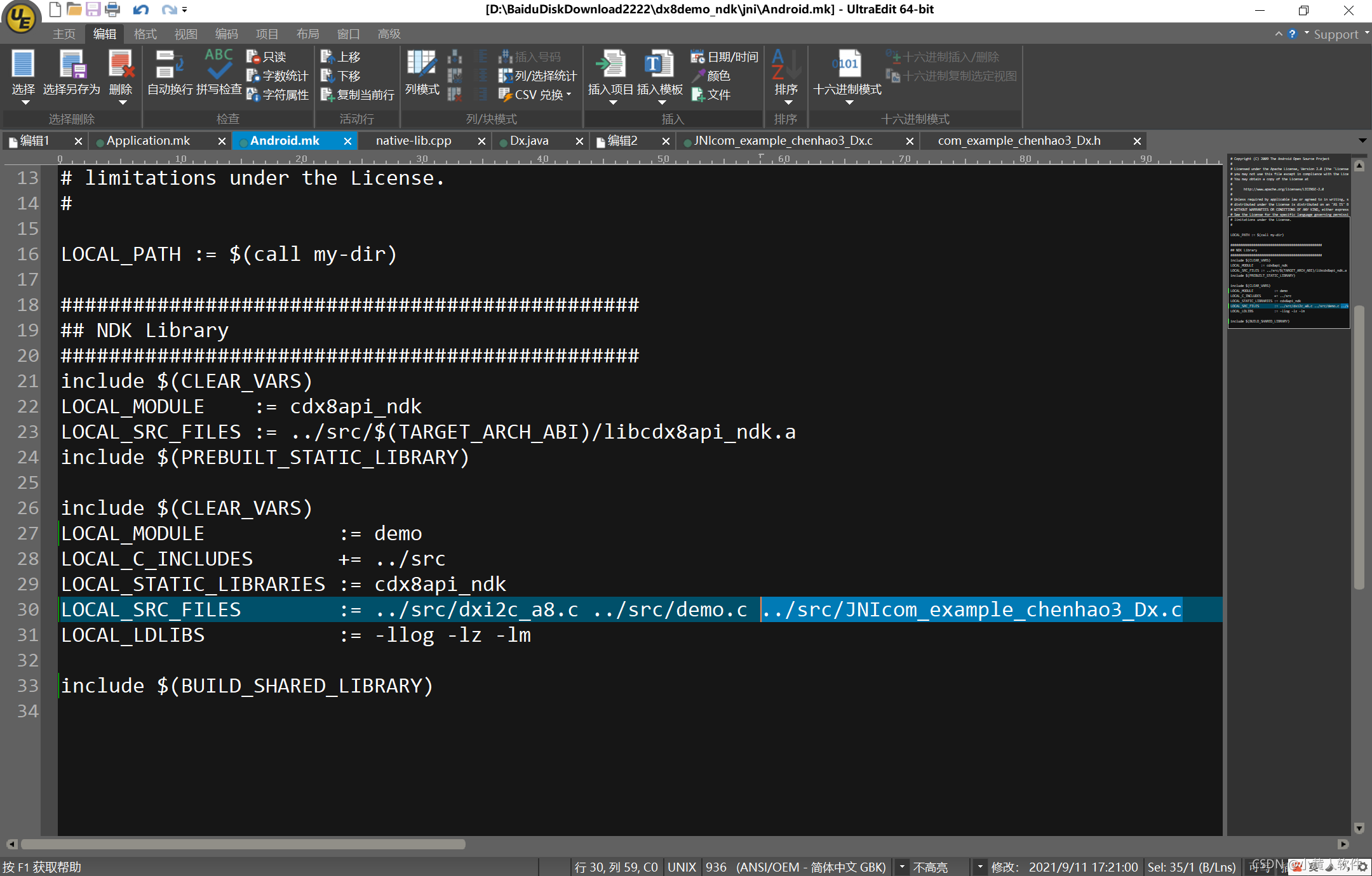 再加入.c到android.mk后,重新编译ndk-build