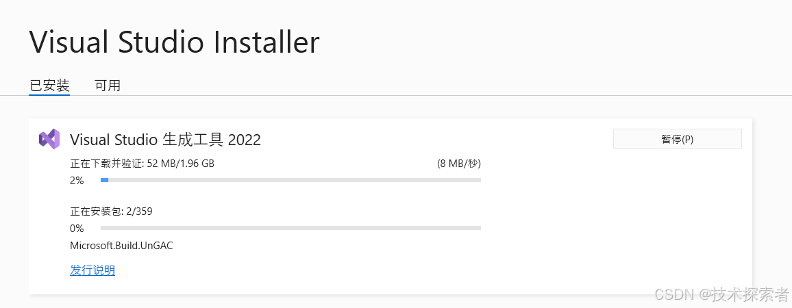下载安装Microsoft C++ Build Tools,需要很长的时间,另外需要下载大量的文件,耗时费力。如果你不想那么费事,还可以手动下载whl文件,手动安装,以跳过这个错误。
