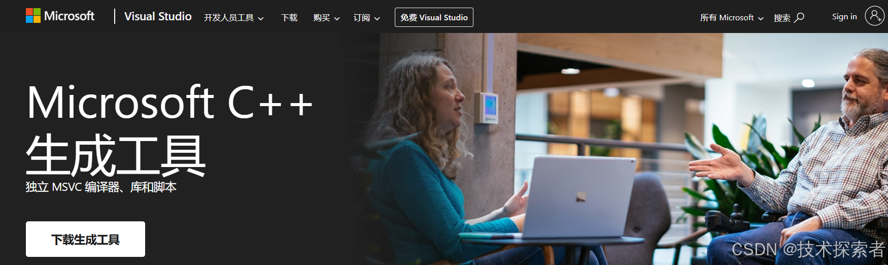 a、访问微软开发工具官方下载网站:https://visualstudio.microsoft.com/zh-hans/visual-cpp-build-tools/